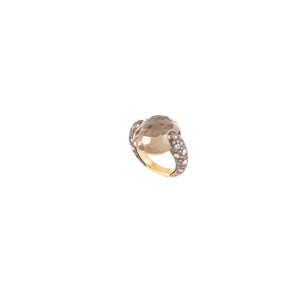 in oro giallo e oro brunito, con quarzo fumé sfaccettato alla sommitŕ, ornato lateralmente da diamanti 'brown', gr. 21. Misura 12 Firmato: Pomellato Numerato: C100031569