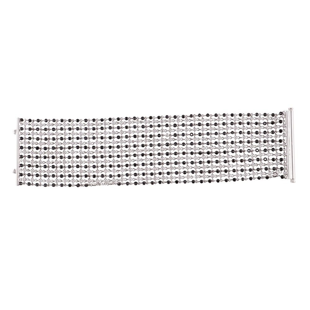 a larga fascia morbida, in oro bianco ornata da brillanti e zaffiri, gr. 50,5. Lunghezza 18 cm, altezza 4,5 cm ca.