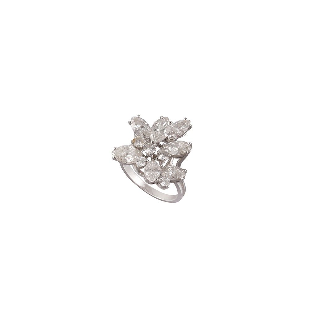 in platino impreziosito da diamanti taglio navette e brillanti del peso complessivo di 5 ct ca., gr. 10,4. Misura 19
