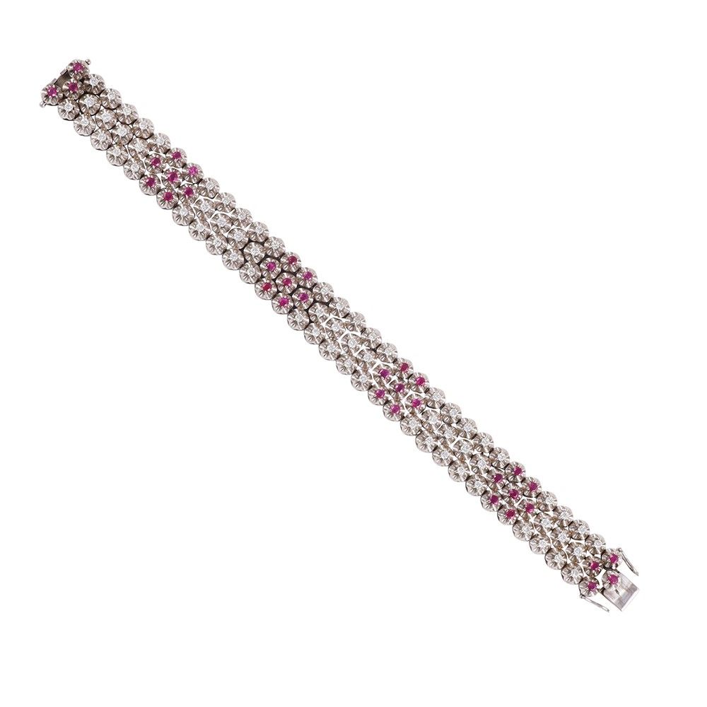 a nastro in oro bianco ornato da brillanti e rubini, gr. 44,4. Lunghezza 17,5 cm