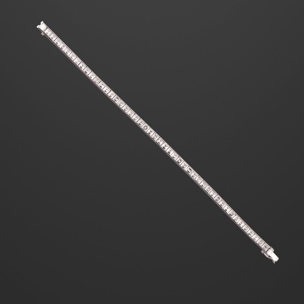'tennis' in oro bianco con diamanti taglio carré del peso complessivo di 8,50 ct ca., gr. 17,9. Lunghezza 17 cm ca.