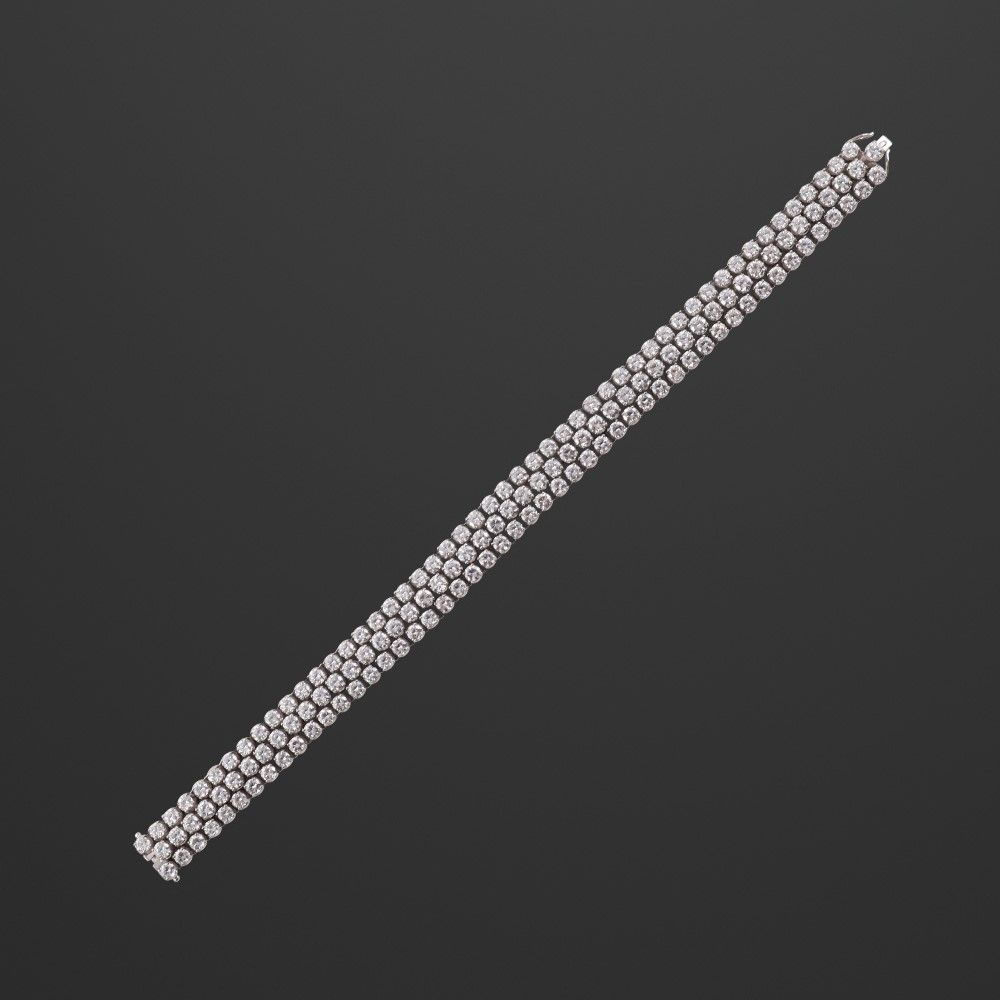 in oro bianco a nastro con tripla rivière di brillanti del peso complessivo di 18 ct ca., gr. 36,3. Lunghezza 18 cm