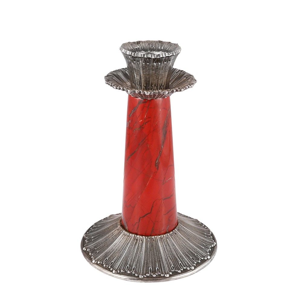 con fusto in diaspro sanguigno, base e coppa con motivi a 'rouches', in argento 925, gr. complessivi 600 ca. Corredato da custodia originale. Dimensioni 11 x (h) 17 cm ca. Firmato: Gianmaria Buccellati