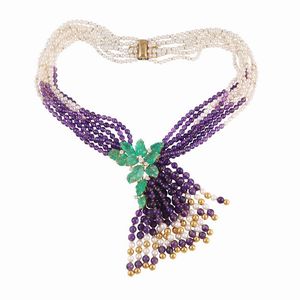 'torchon' composto da sette fili di perle coltivate e sfere di ametista, alternate a rondelle in oro, la collana [..]