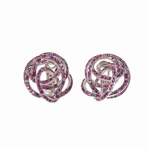 a clip con perno ripiegabile, realizzati in oro giallo a motivo intrecciato ornati da gemme tra cui corindoni [..]