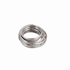 fascia in oro bianco e gemme, formata da fedi incrociate disposte su più ordini, gr. 23. Misura 16 Firmato: de [..]