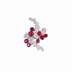 in oro bianco sormontato da un sinuoso motivo, impreziosito da diamanti taglio navette e goccia del peso complessivo [..]
