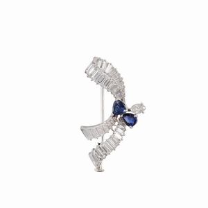 in platino a nastro impreziosita da diamanti taglio baguette, due zaffiri a goccia e un diamante navette, gr. [..]