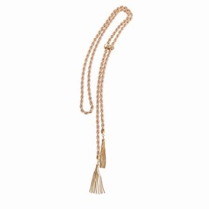 in oro rosa a cordoncino con fermezza ornata da piccoli brillanti e nappine terminali in oro giallo, gr. 44,5. [..]