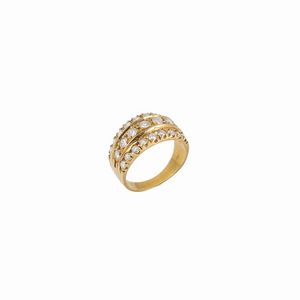 in oro giallo a fascia, ornato anteriormente da brillanti del peso complessivo di 1 ct ca., gr. 5,7. Misura 15 [..]