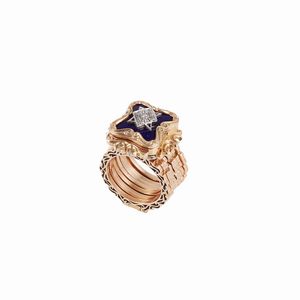 rigido in oro giallo e bianco, ornato anteriormente da motivi a goccia in smalto blu e brillanti, riproposti anche [..]
