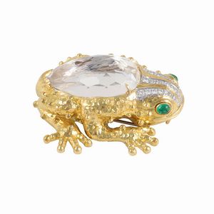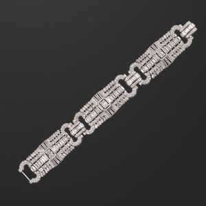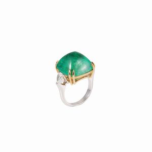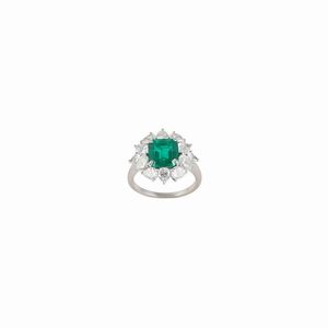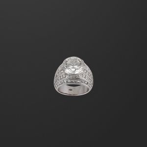 contrarié con diamante rosa ovale del peso di 5,02 ct, tre diamanti a goccia del peso complessivo di 3,80 ct ca., [..]