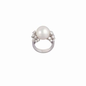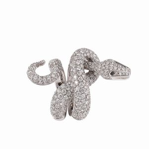 in argento, a tre piani con presa ad anello, gr. 1.550 ca. Altezza 47 cm, diametro piatti 32 cm, 25 cm e 20 cm [..]