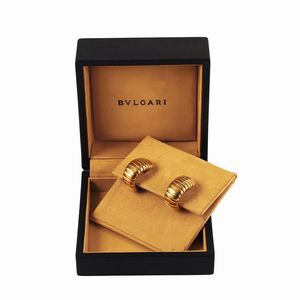 a clip in oro giallo, gr. 25,4. Corredati da custodia originale. Dimensioni 2 x 1,2 cm ca. Firmati: Bvlgari