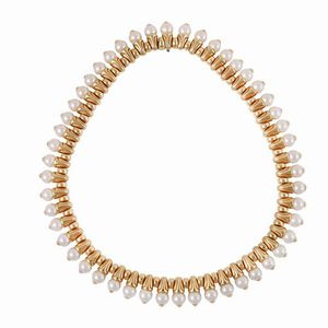 in oro giallo interamente precorso da perle coltivate, gr. 170,9. Corredato da custodia originale. Lunghezza 40 [..]