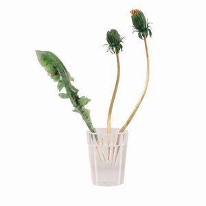 composta da due steli di tarassaco in oro giallo, con boccioli in smalto verde (mancanze) e giadeite, completa [..]