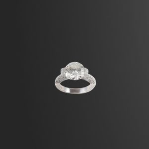 in oro bianco con brillante posto al centro del peso di 4,47 ct, e piccoli brillanti ad ornamento, gr. 6,8. Misura [..]