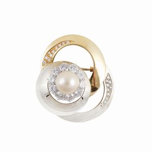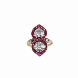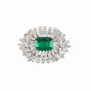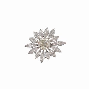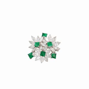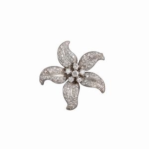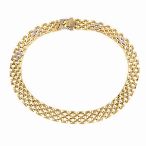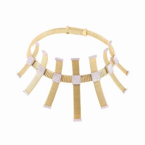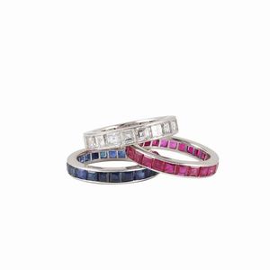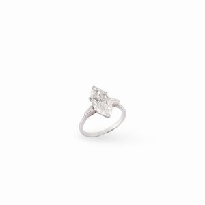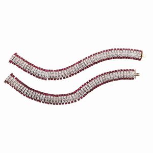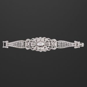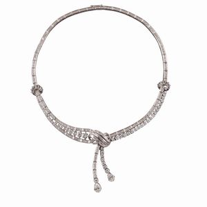 rivière di brillanti realizzata in platino, evidenziata al centro da un motivo a nastro in diamanti taglio baguette [..]