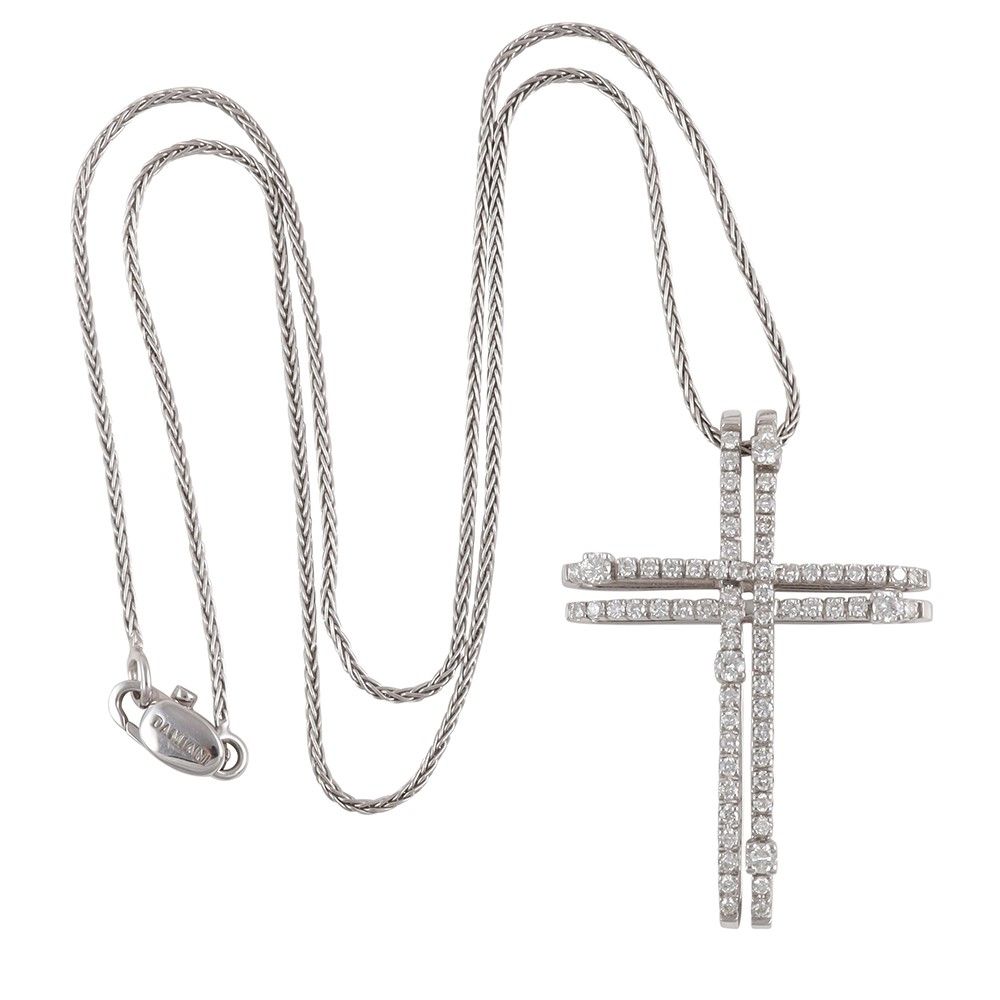 croce in oro bianco con brillanti del peso di 0,90 ct ca., sostenuto da catenina, gr. complessivi 11,8. Corredati da custodia, scatola e garanzia. Dimensioni pendente 4 x 2,8 cm ca., lunghezza catenina 43 cm Firmati: Damiani