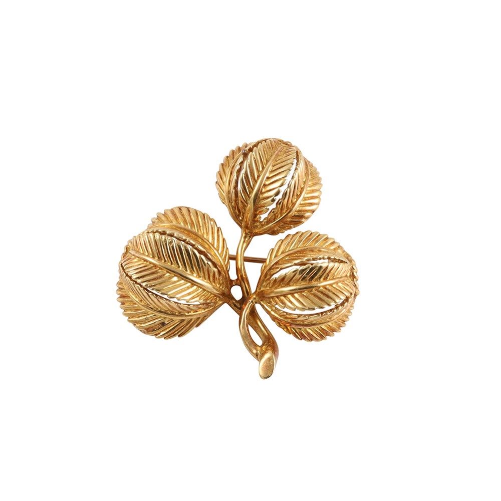 ramage con motivi fogliati, in oro giallo gr. 14,8. Dimensioni 3,5 x 3,4 cm ca. Firmata: Tiffany & Co.