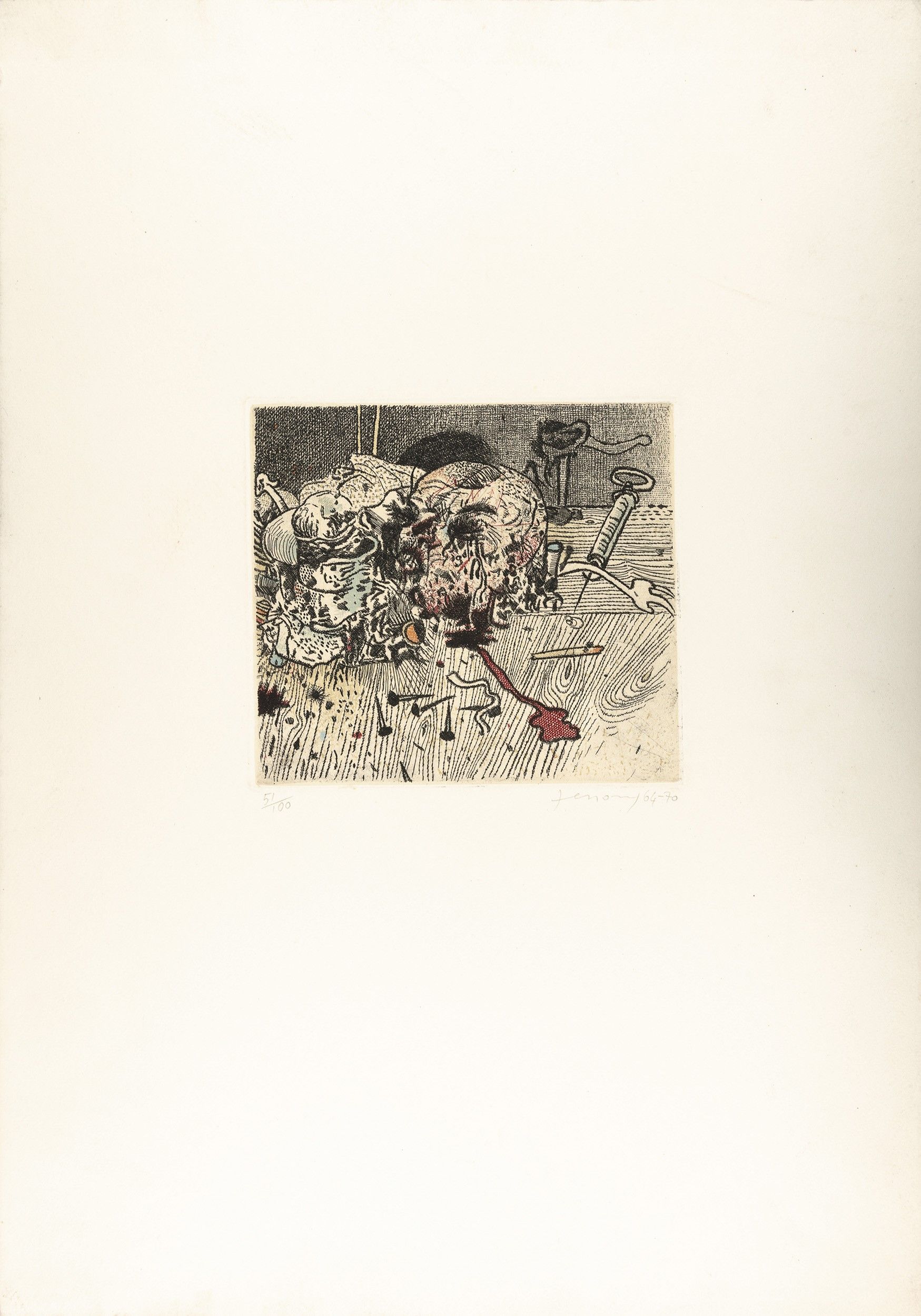 1964-1970 dimensioni lastra: cm 14,5 x 16 es. 51/100 firmato e datato in basso a destra, numerato in basso a sinistra