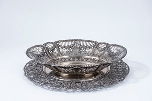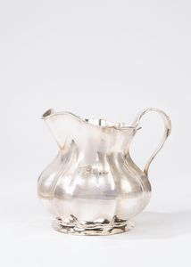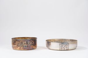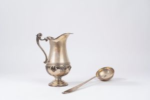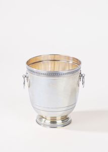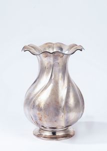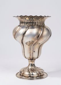 in argento e vermeil, Peso g 533,40 h cm 16,00x8,00 Italia, secolo XX il fusto sbalzato con motivi floreali e [..]