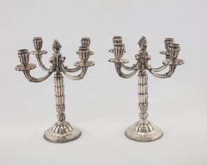 in argento 925, Peso lordo kg 1,858 Usa, secolo XX composto coppia di candelieri (h cm 25,30, interno rinforzato), [..]
