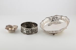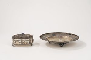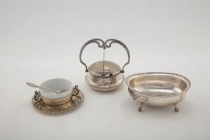 in argento, Peso netto g 202,00 Italia, secolo XX le salierine in stile Impero con tre piedini ferini su [..]