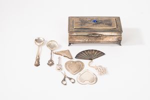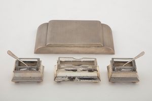 in argento, Peso lordo g 676,00 (esclusi gli inserti in vetro) Italia, secolo XX composto da scatola porta sigari [..]