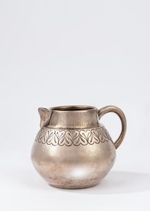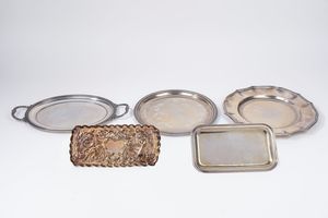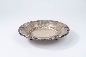 in argento, Peso g 360,00 cm 23,50 Italia, secolo XX con bordo traforato, decorato con grappoli d'uva su quattro [..]