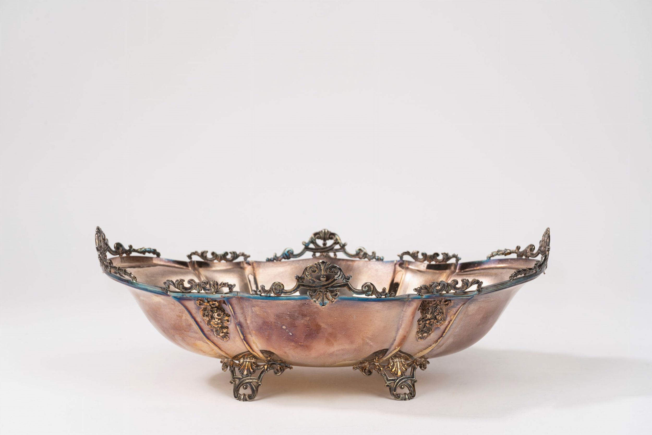 Italia, secolo XX di forma ovale, polilobato, poggiante su quattro piedini e bordo a volute.