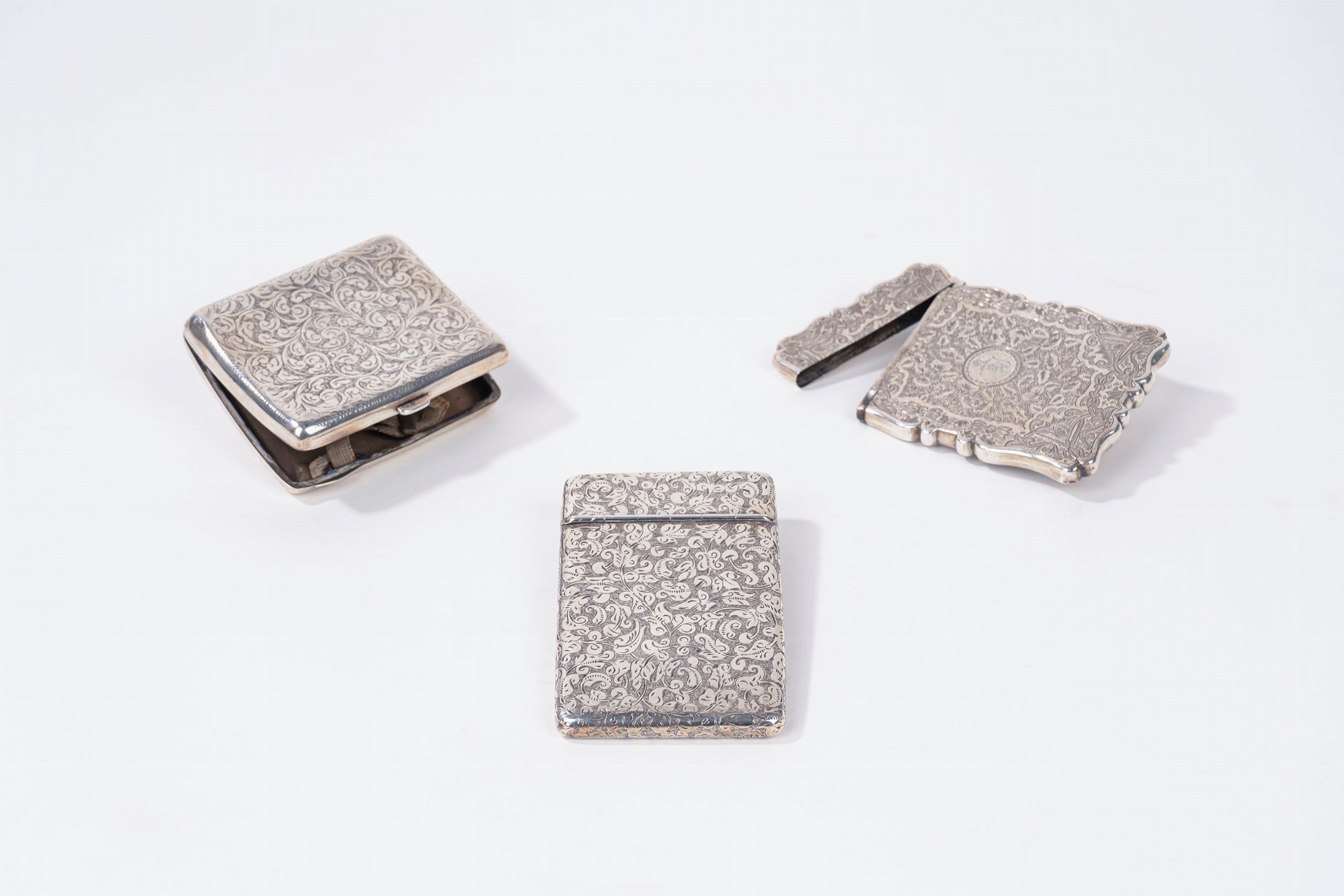Inghilterra, secolo XIX/XX incisi con decori floreali, il porta biglietti Londra 1901 e Birmingham 1871, il porta sigarette Birmingham 1903.