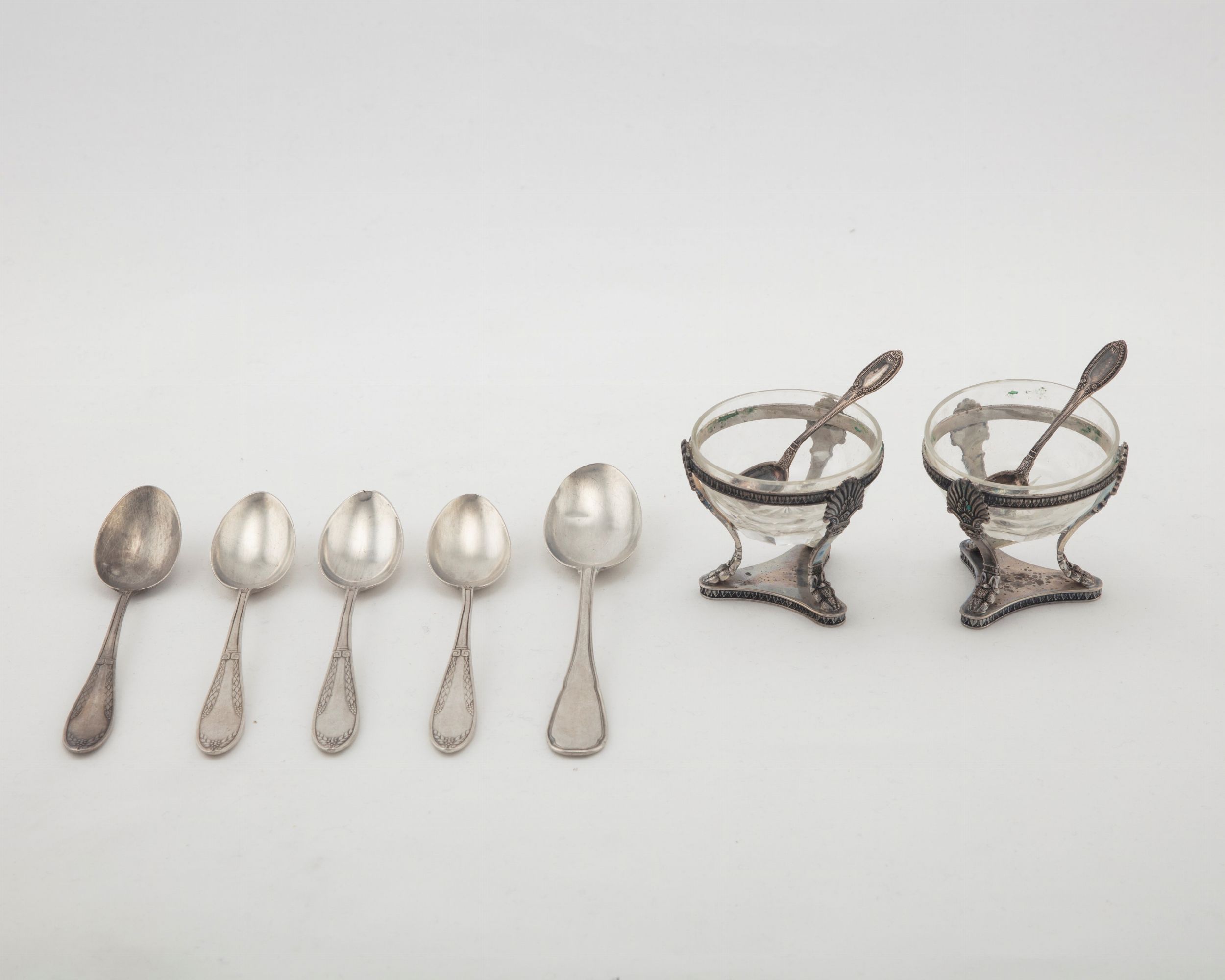Italia, secolo XX le salierine in stile Impero con tre piedini ferini su base triangolare, con cucchiaini.