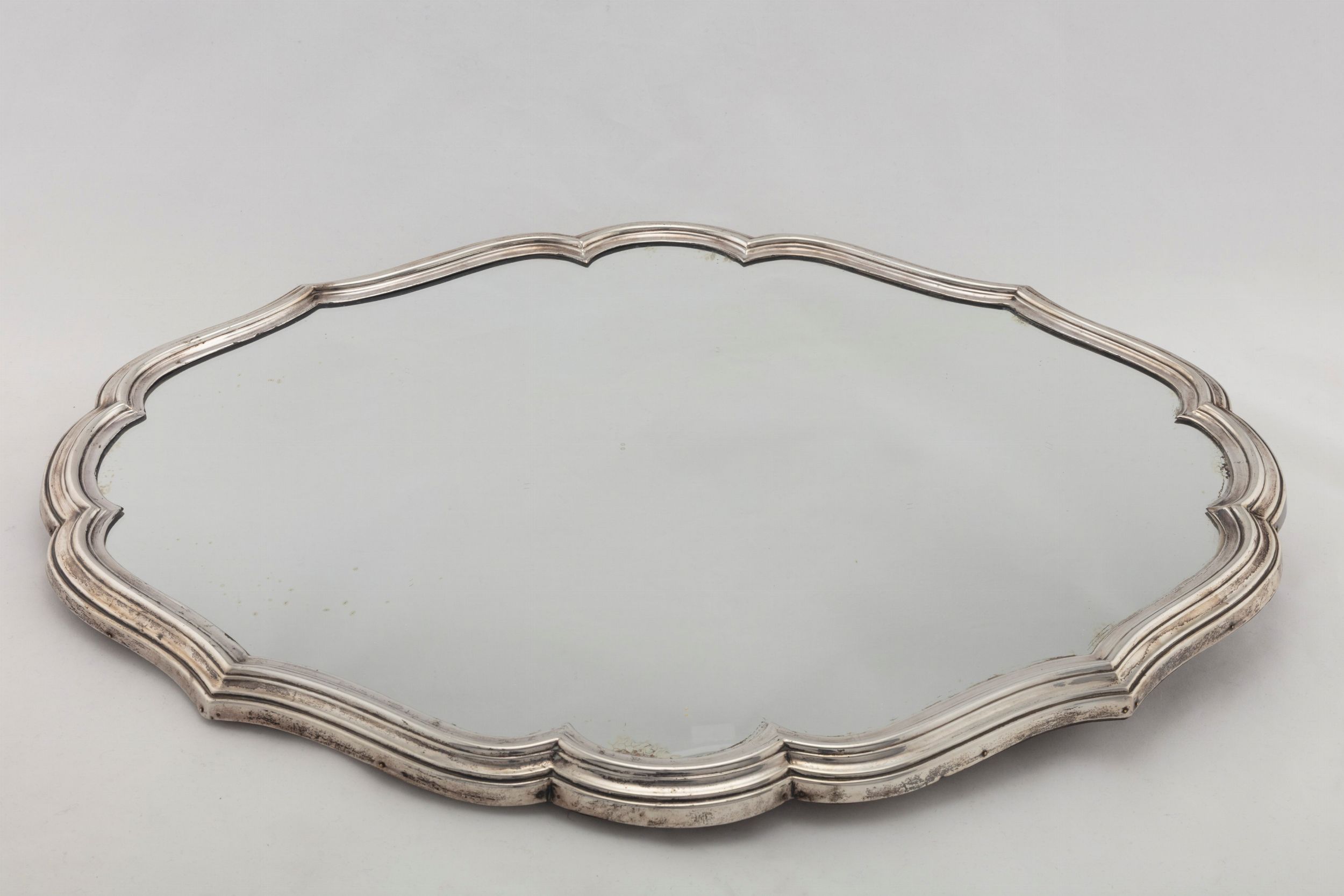 Italia, secolo XX a profilo mistilineo, supporto in legno, con specchio.