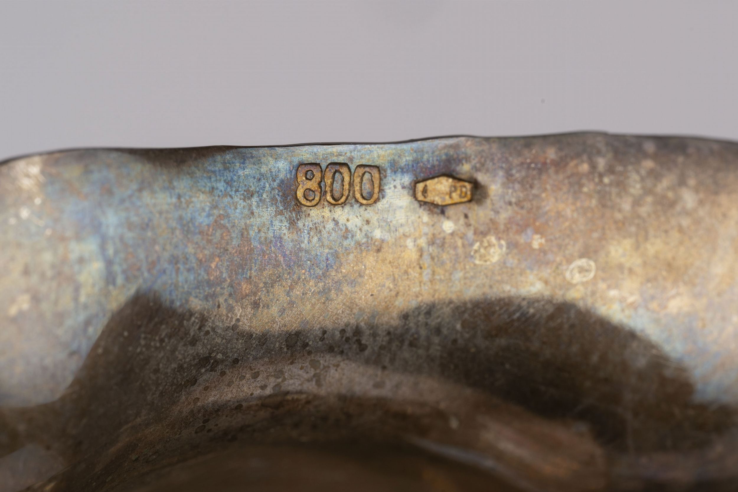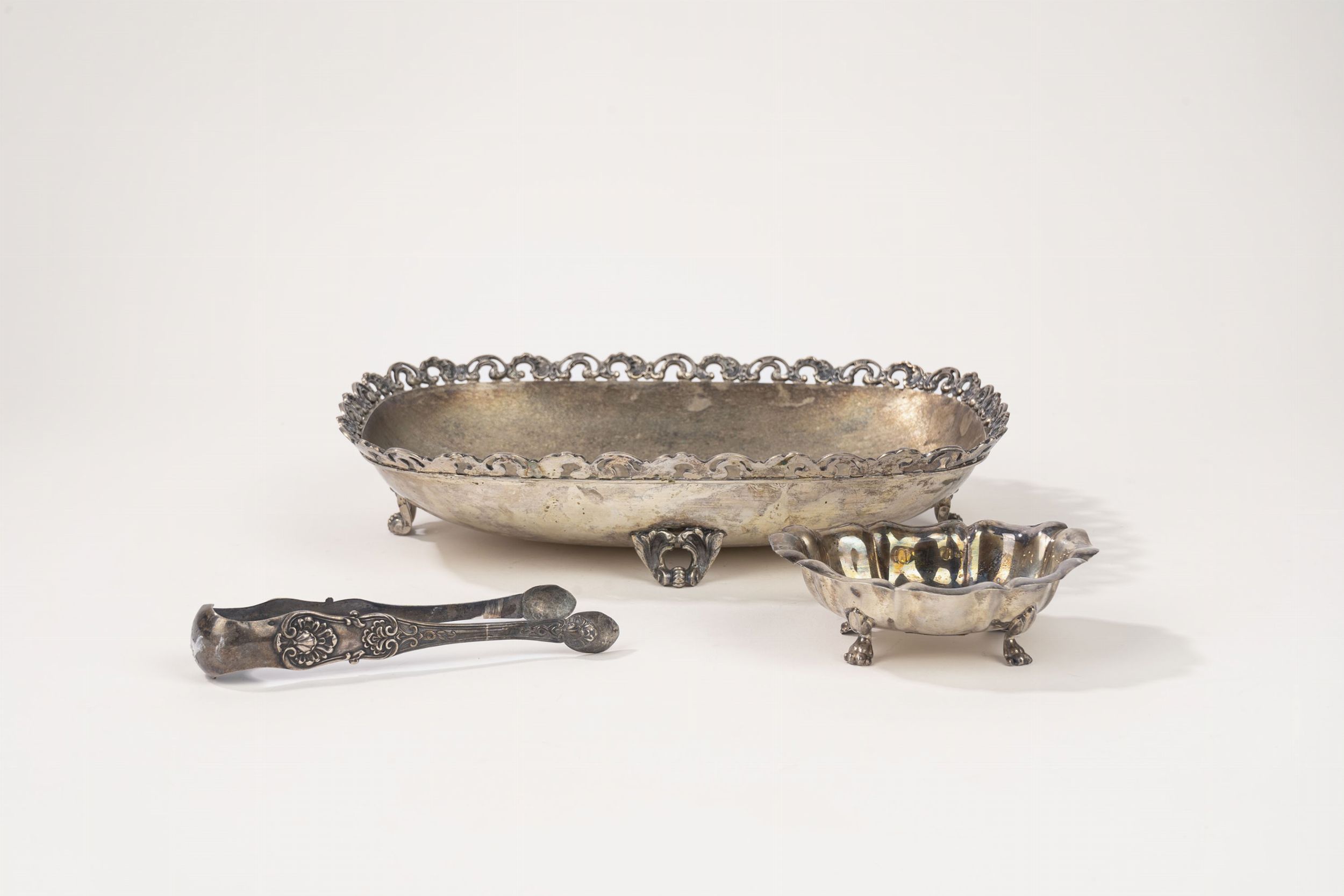 Italia, secolo XX composto da un centrotavola (l cm 30,00x22,50), una pinza (l cm 16) e una ciotola (cm 10,00x12,50).