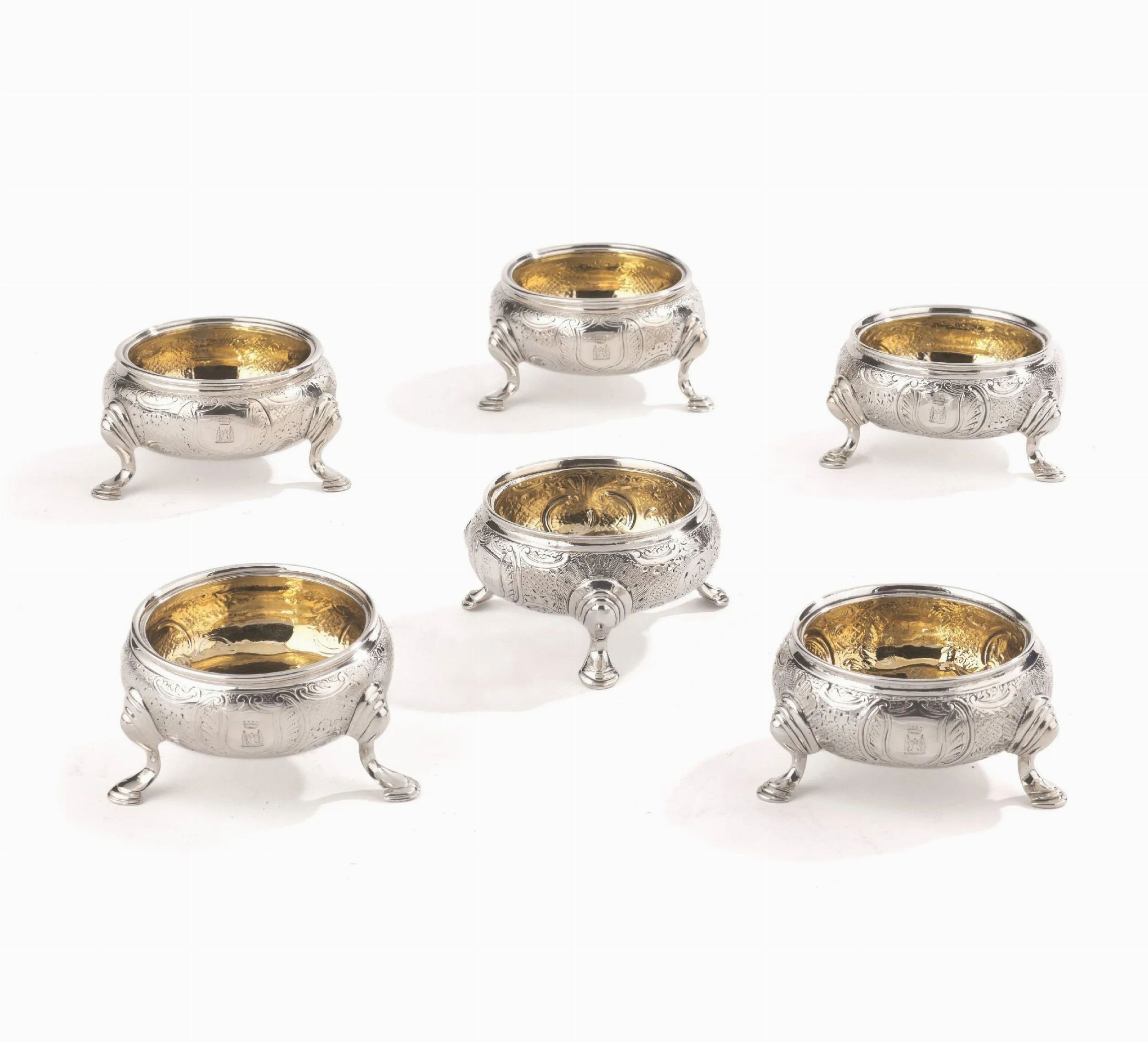 SEI SALIERE, LONDRA, 1839 e 1848, ARGENTIERI RICHARD SISLEY E WILLIAM KER REID