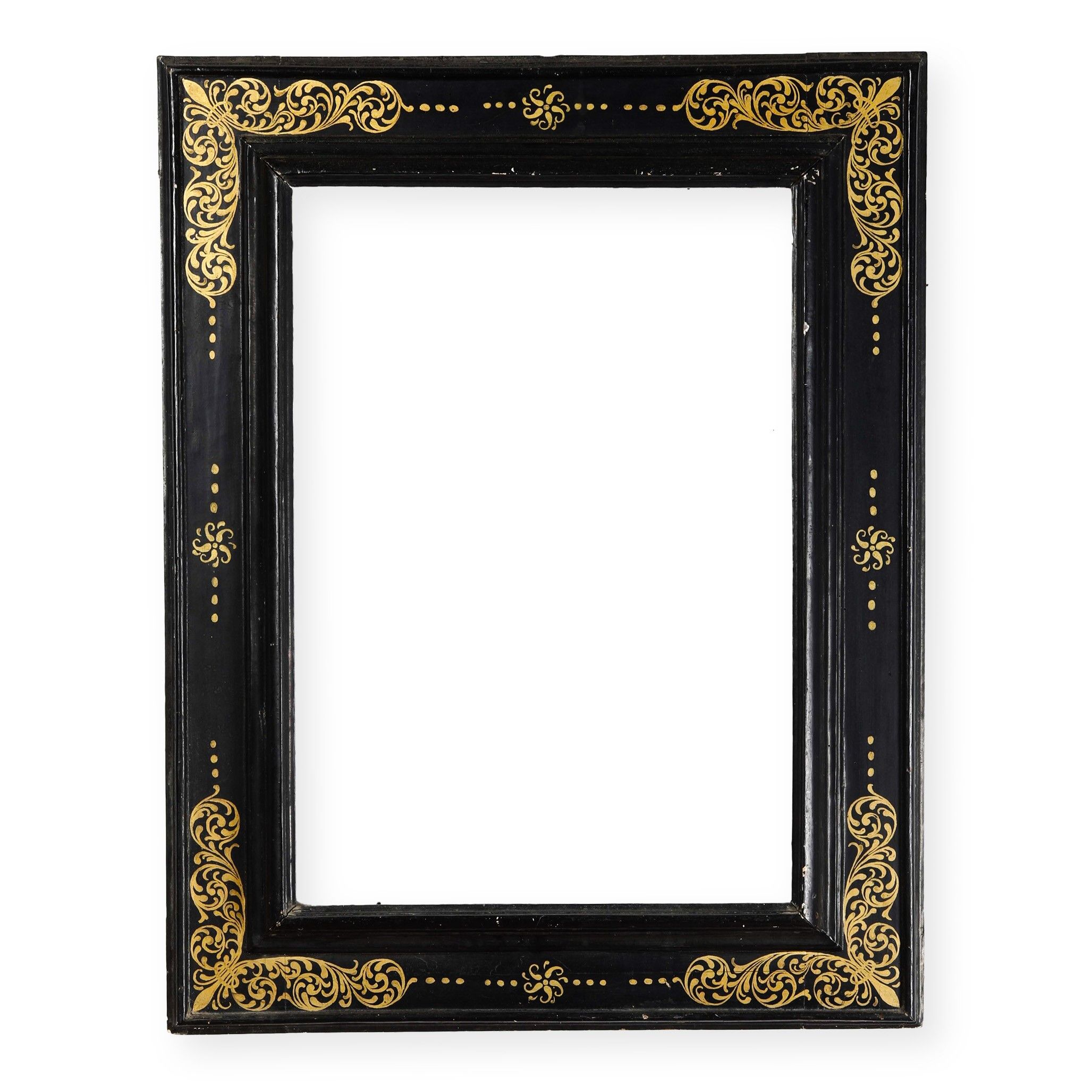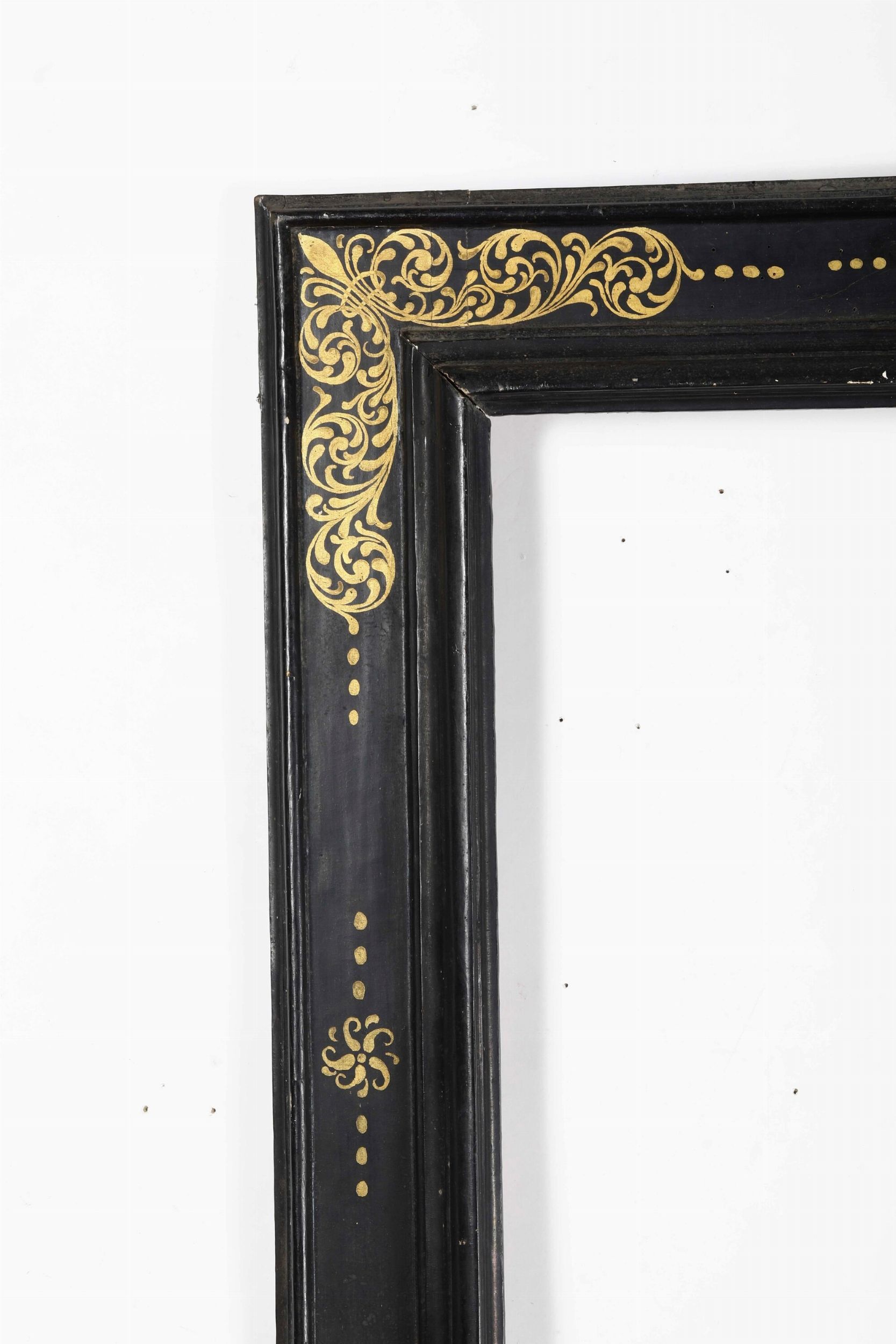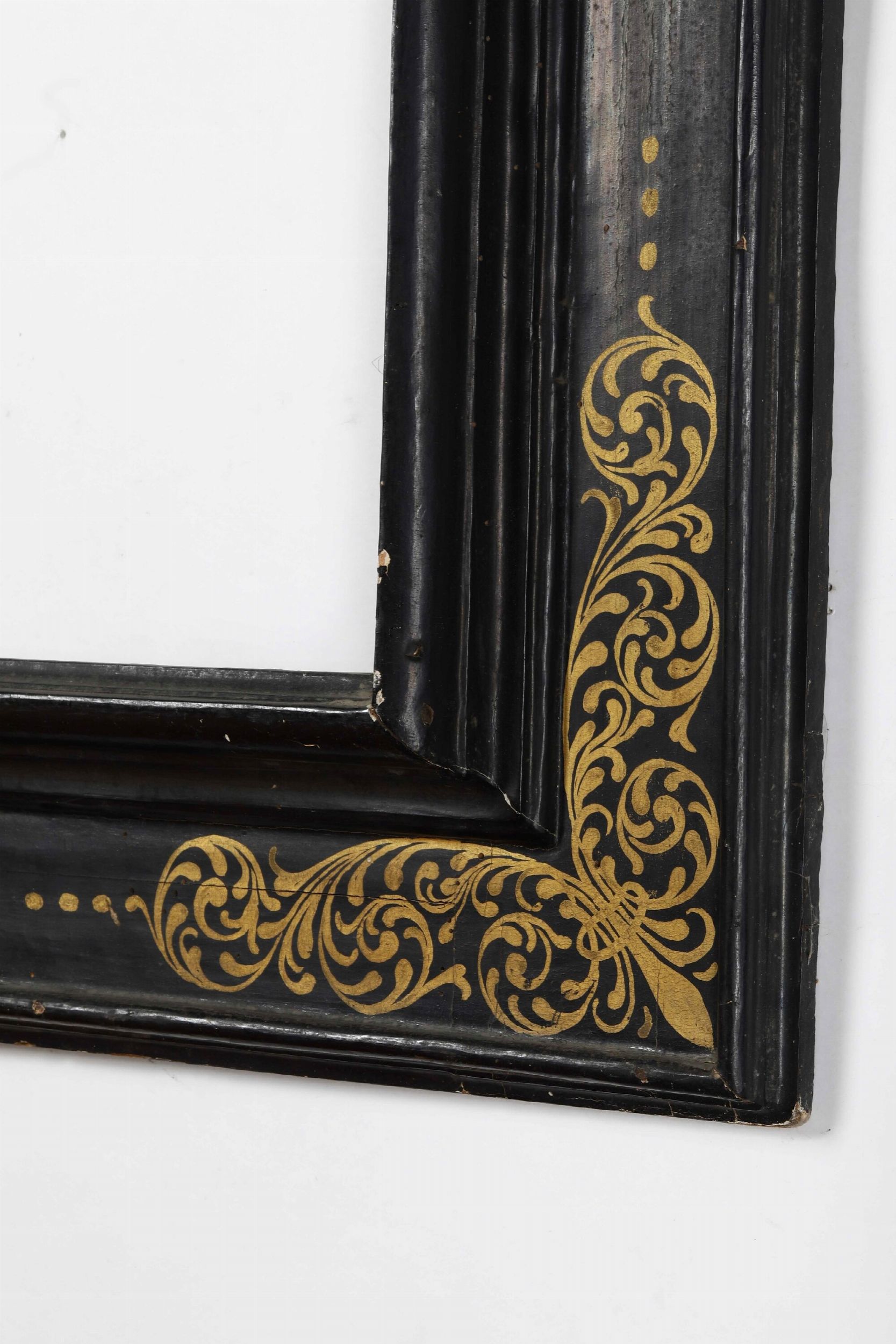 Cornice a cassetta in legno ebanizzato e dorato. Toscana XVII secolo
