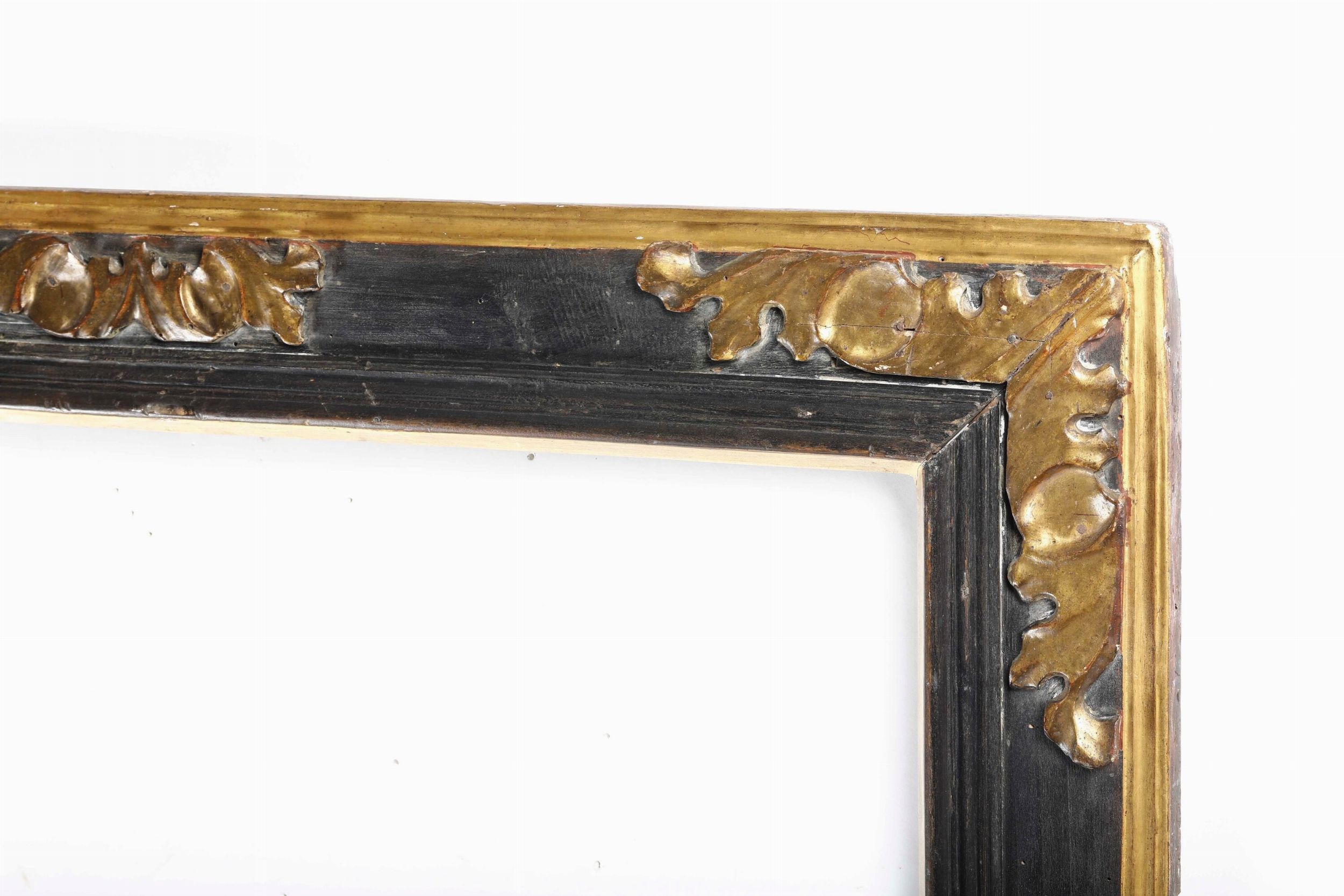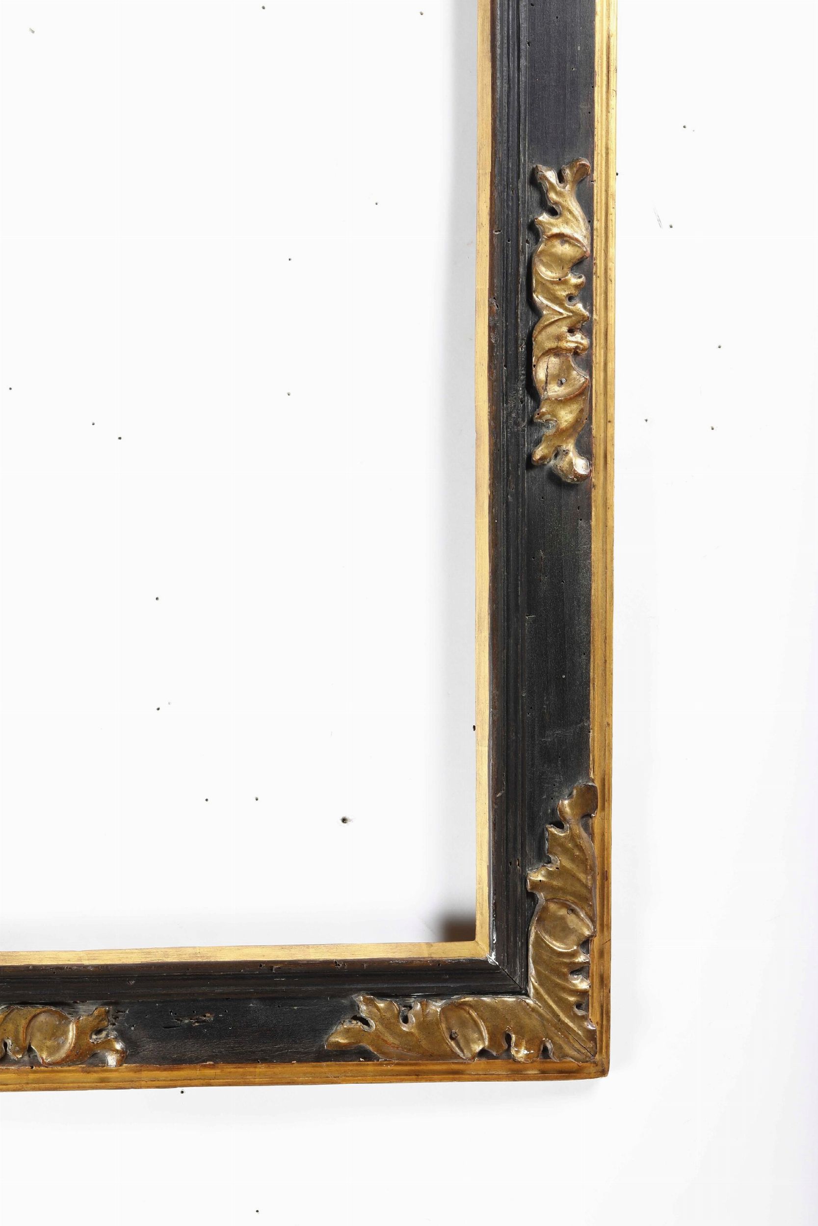 Cornice a cassetta in legno intagliato ebanizzato e dorato. Italia centrale XVII [..]