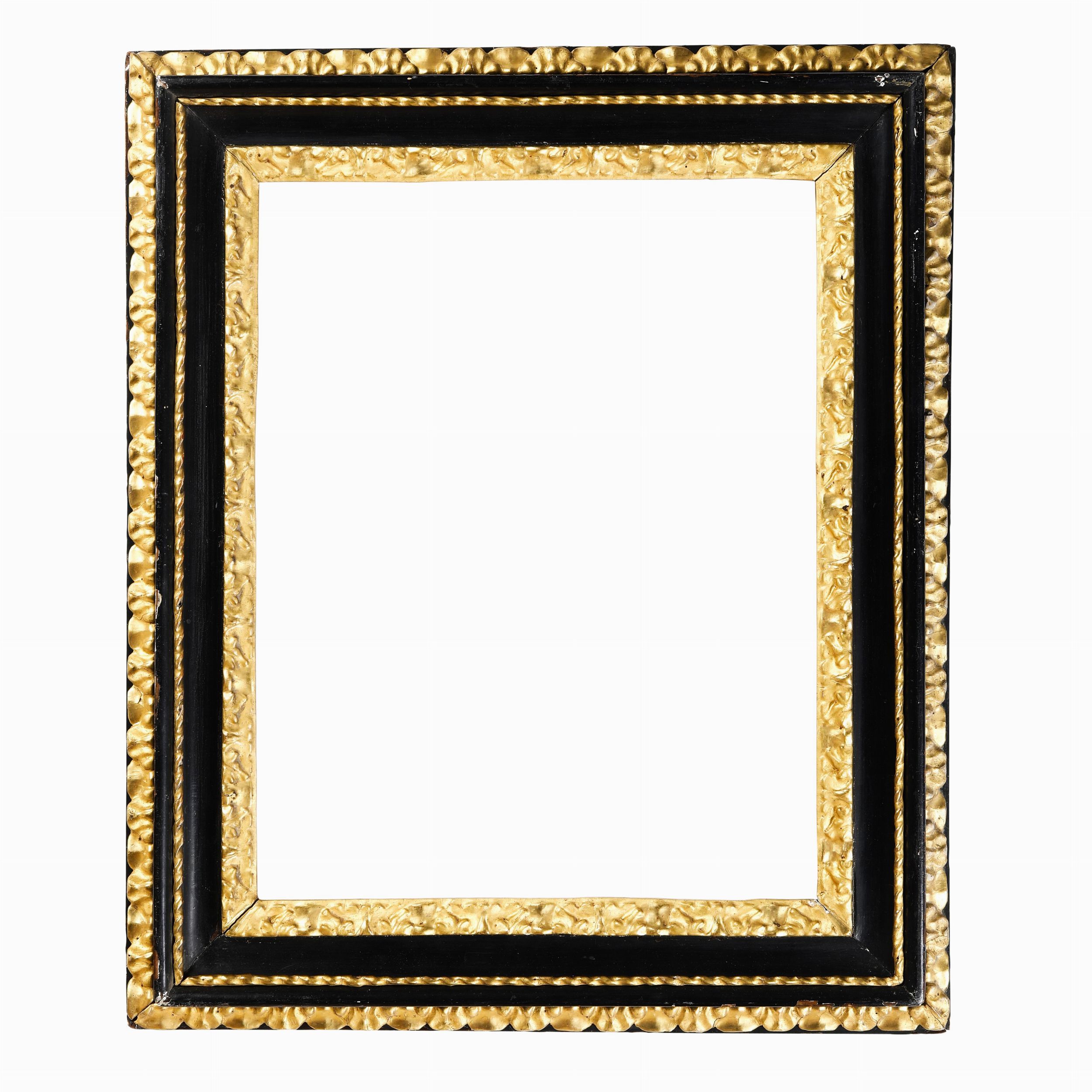 Cornice a sagoma Salvator Rosa ebanizzata e dorata. Italia centrale XVIII secolo