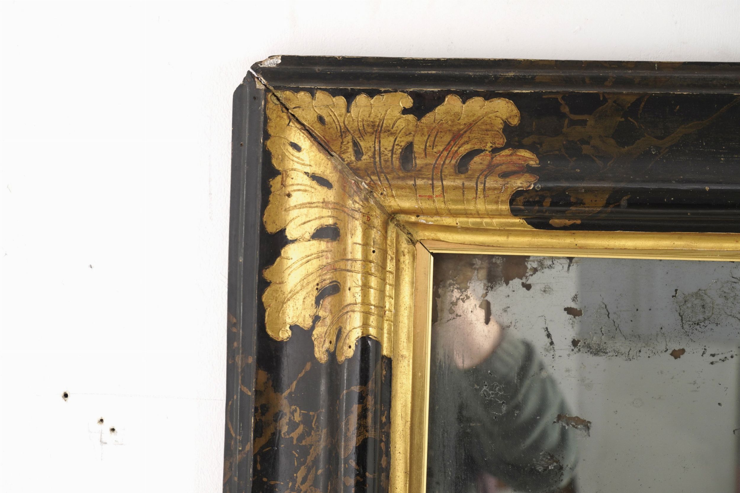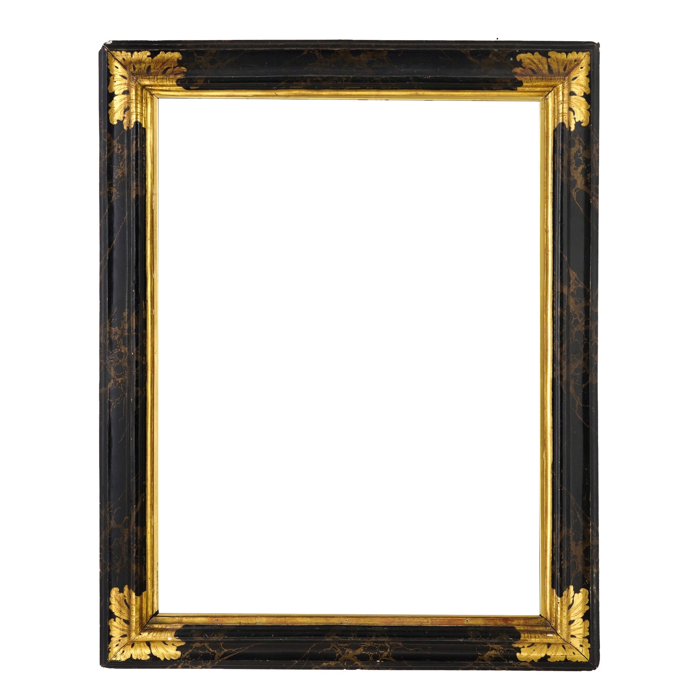 Cornice con specchio in legno laccato nero a finto marmo. Italia centrale XVIII [..]