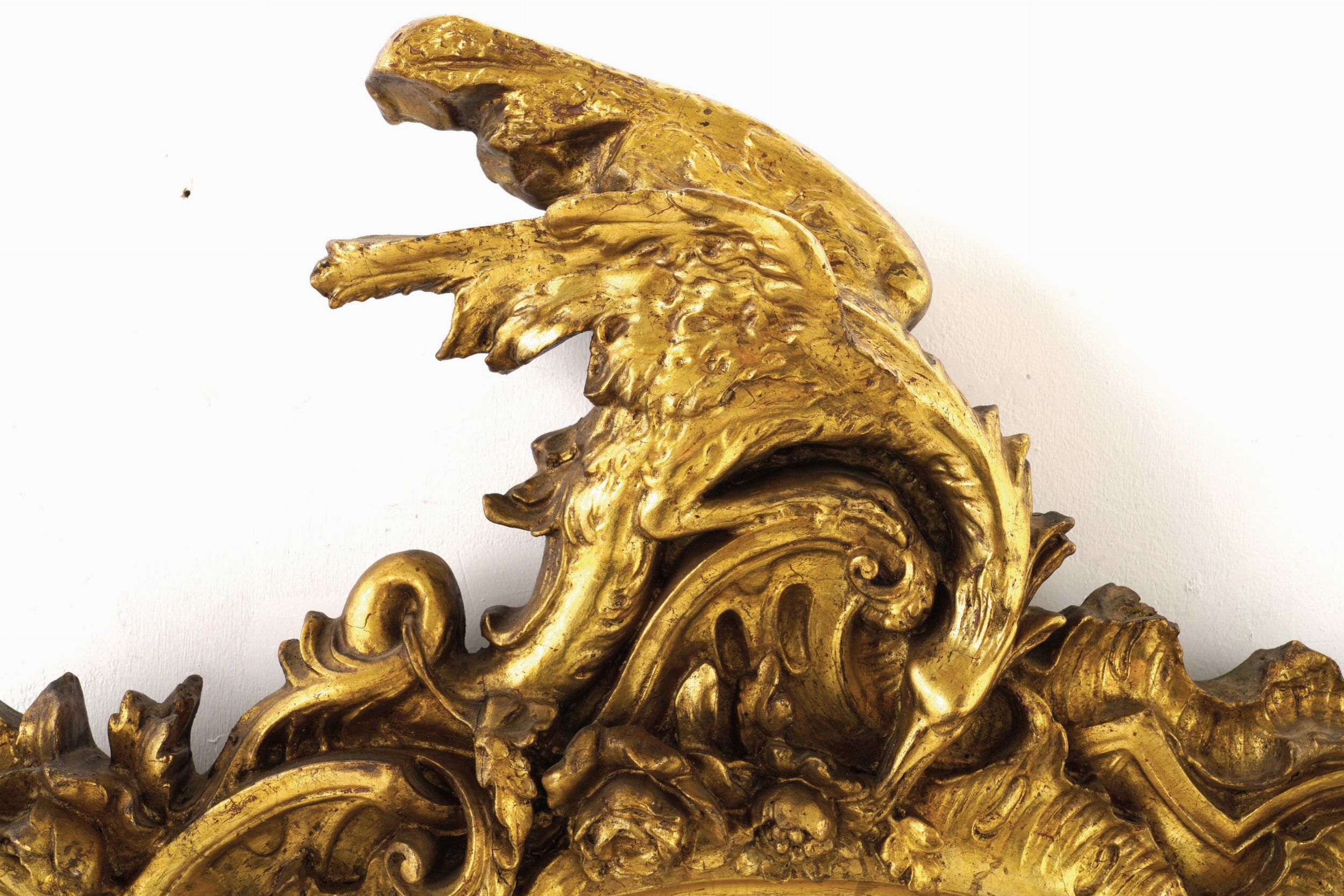 Cornice di forma ovale in legno intagliato e dorato. XIX secolo