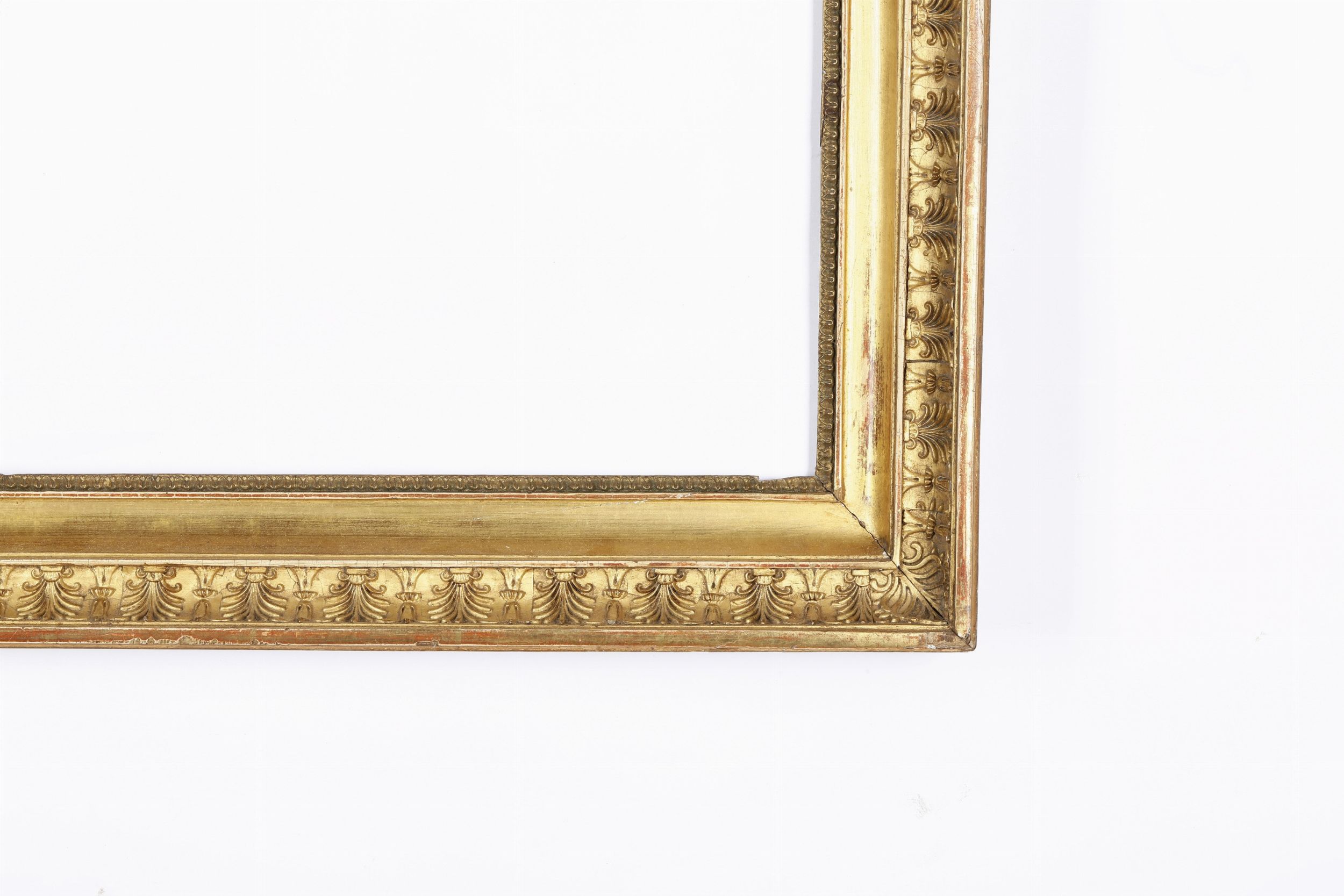 Cornice in legno con decori in pastiglia dorata. XIX secolo