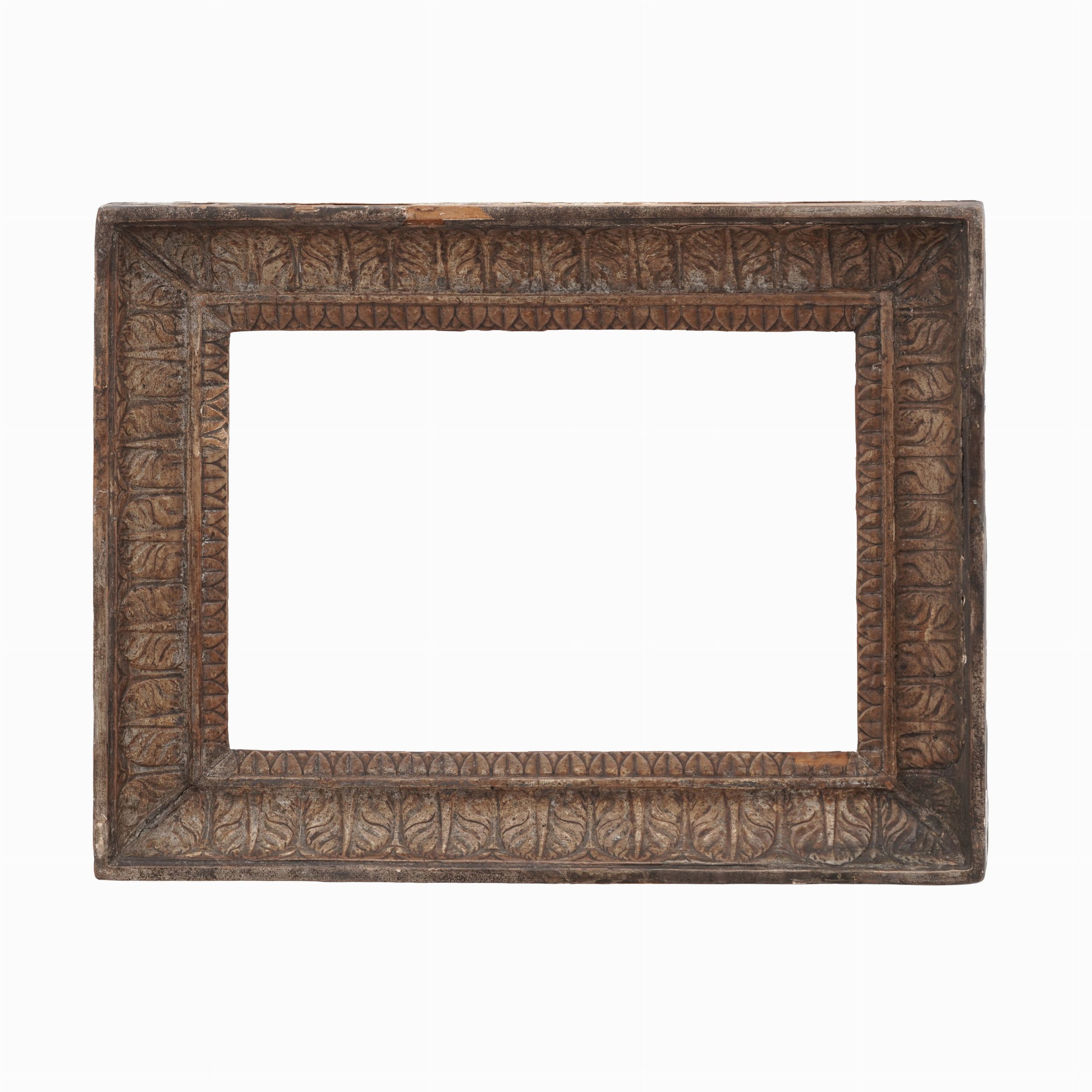Cornice in legno intagliato a palmette con tracce di argentatura. XIX secolo