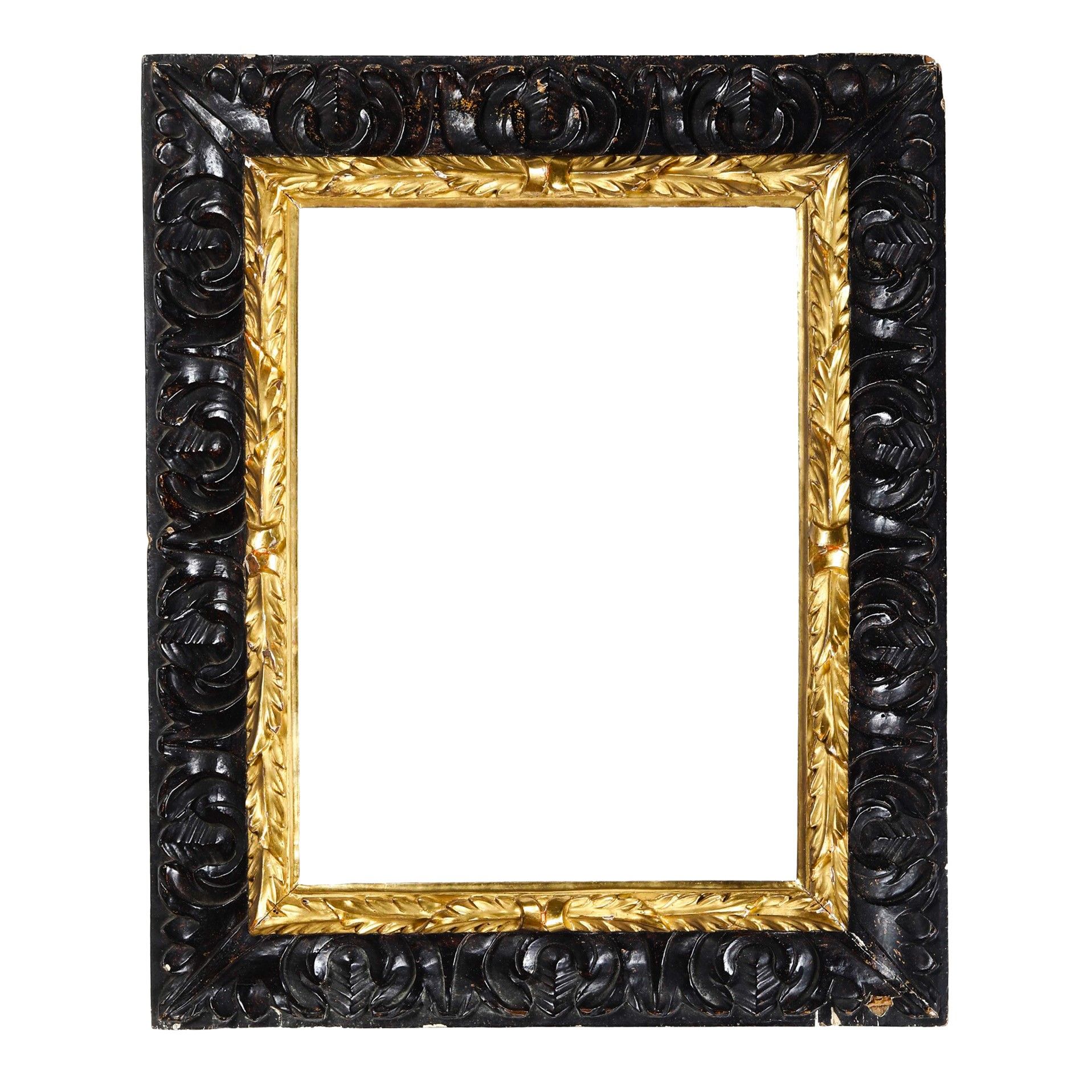 Cornice in legno intagliato, dipinto e dorato. Italia del Nord XVII secolo