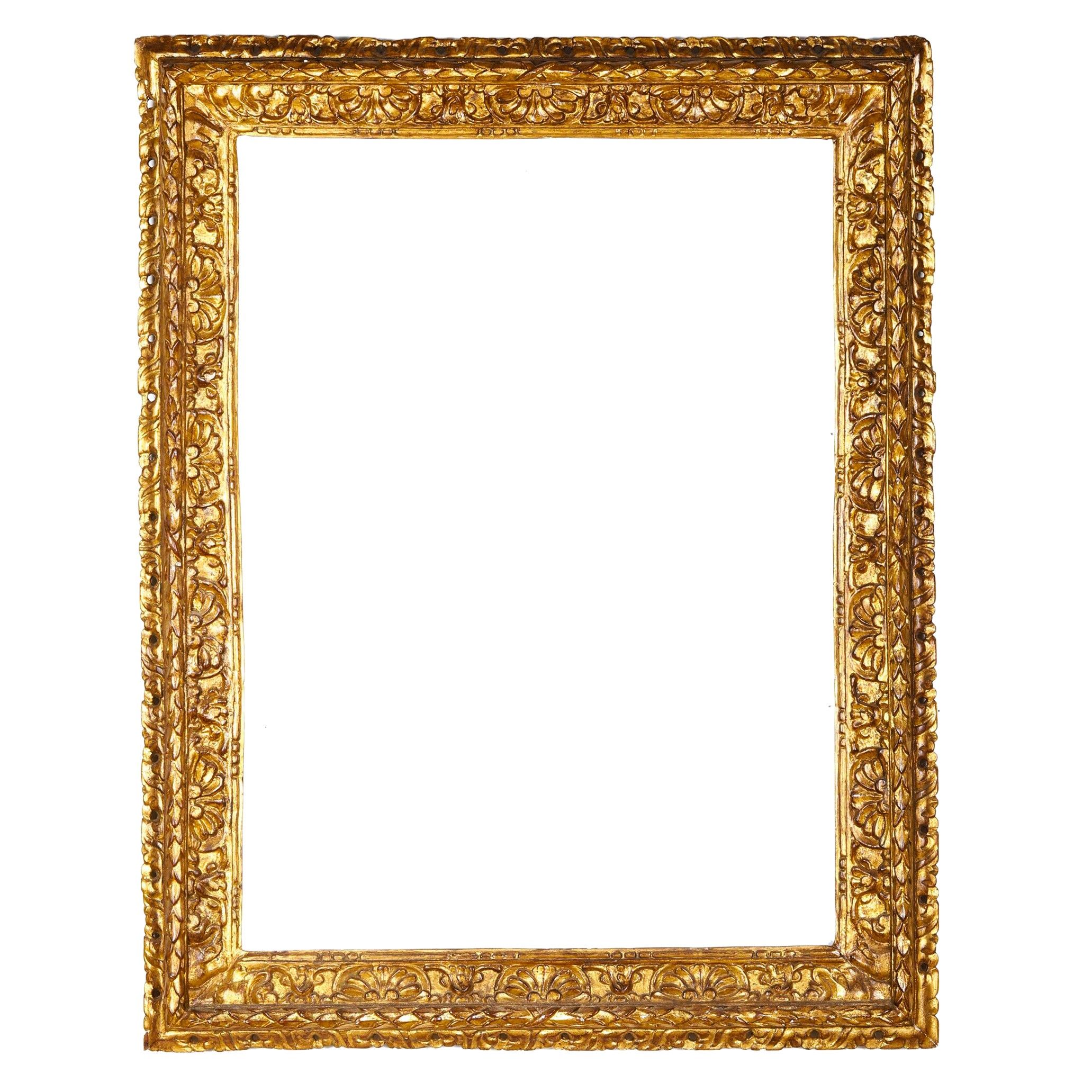 Cornice in legno intagliato e dorato. Italia centrale, XVII secolo