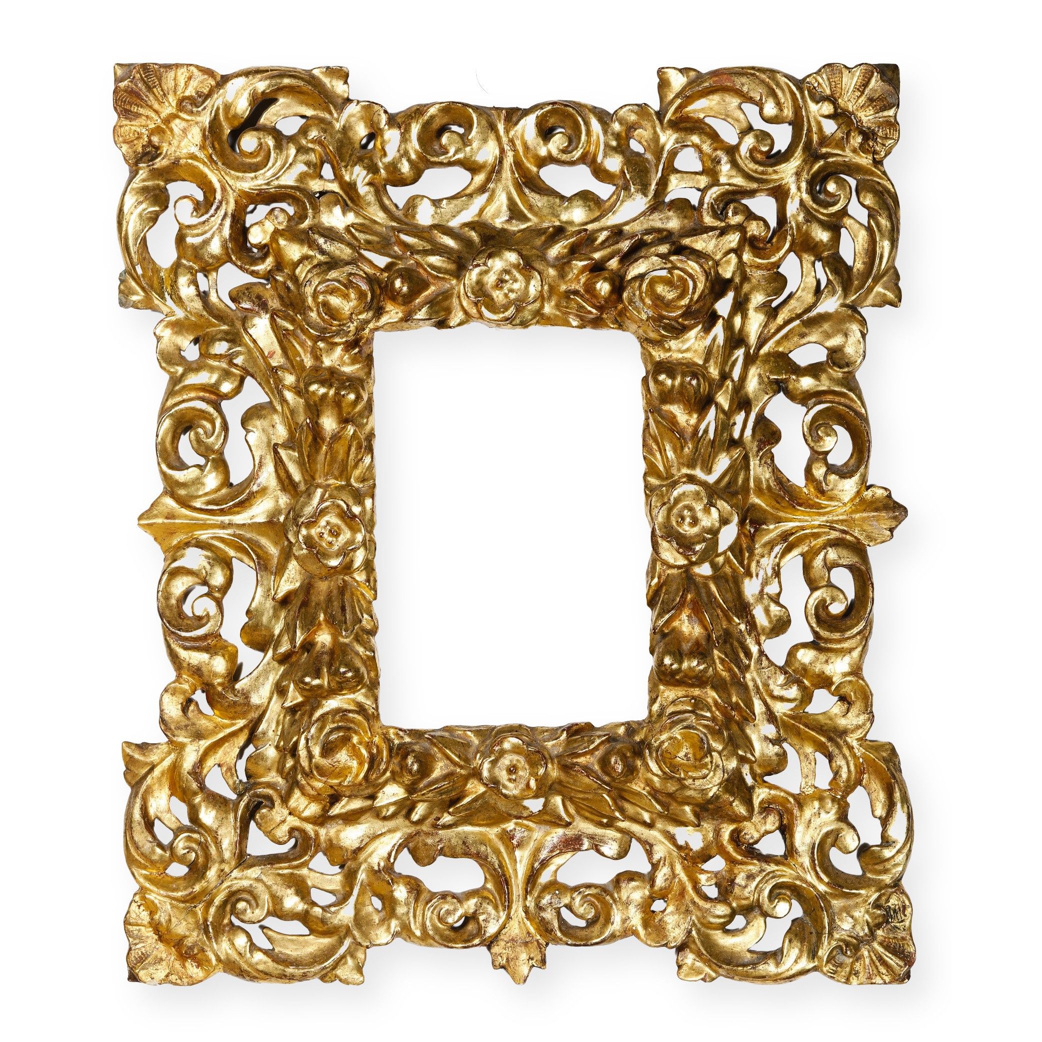 Cornice in legno intagliato e dorato. Spagna XVII secolo