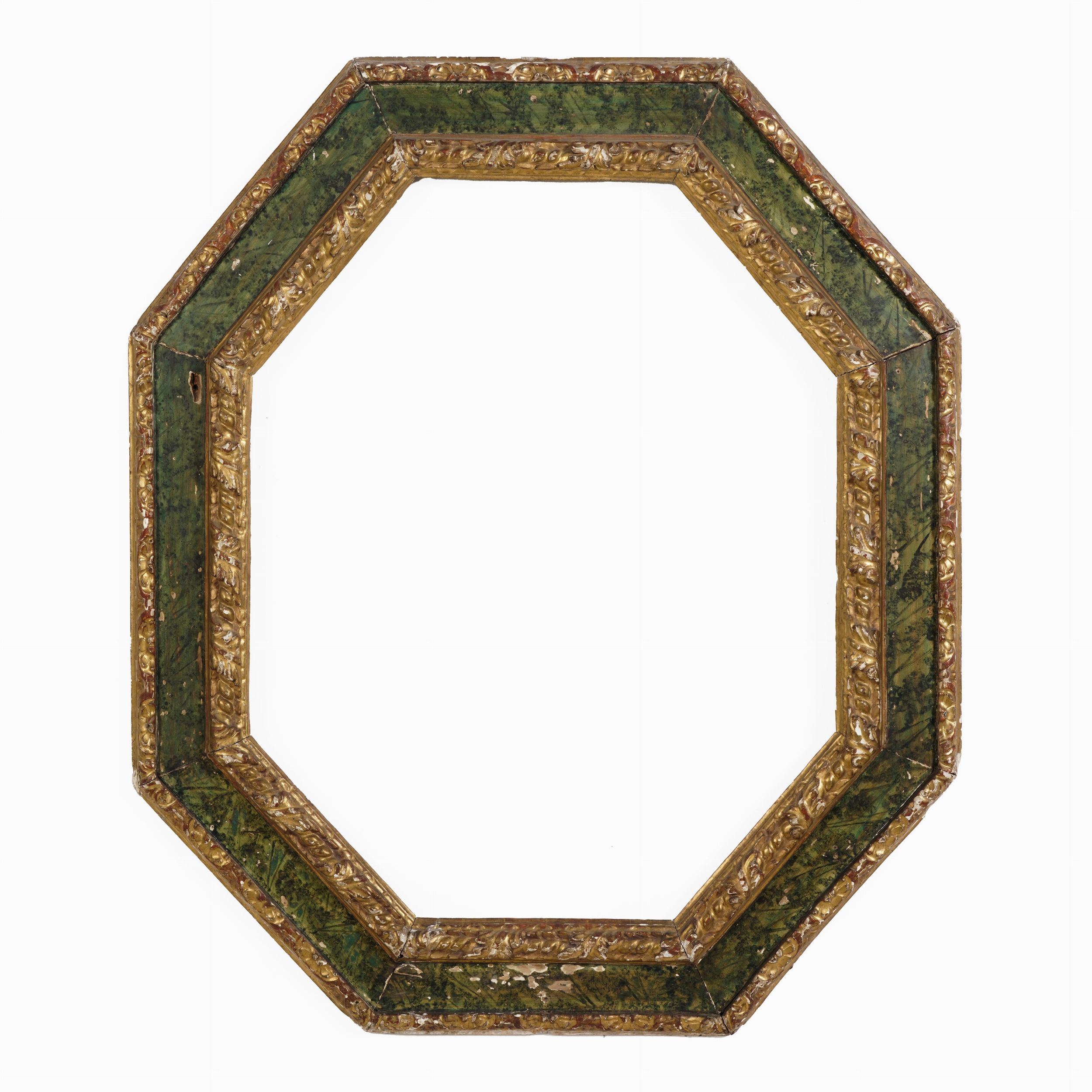 Cornice ottagonale in legno intagliato, laccato e dorato. Marche XVIII secolo
