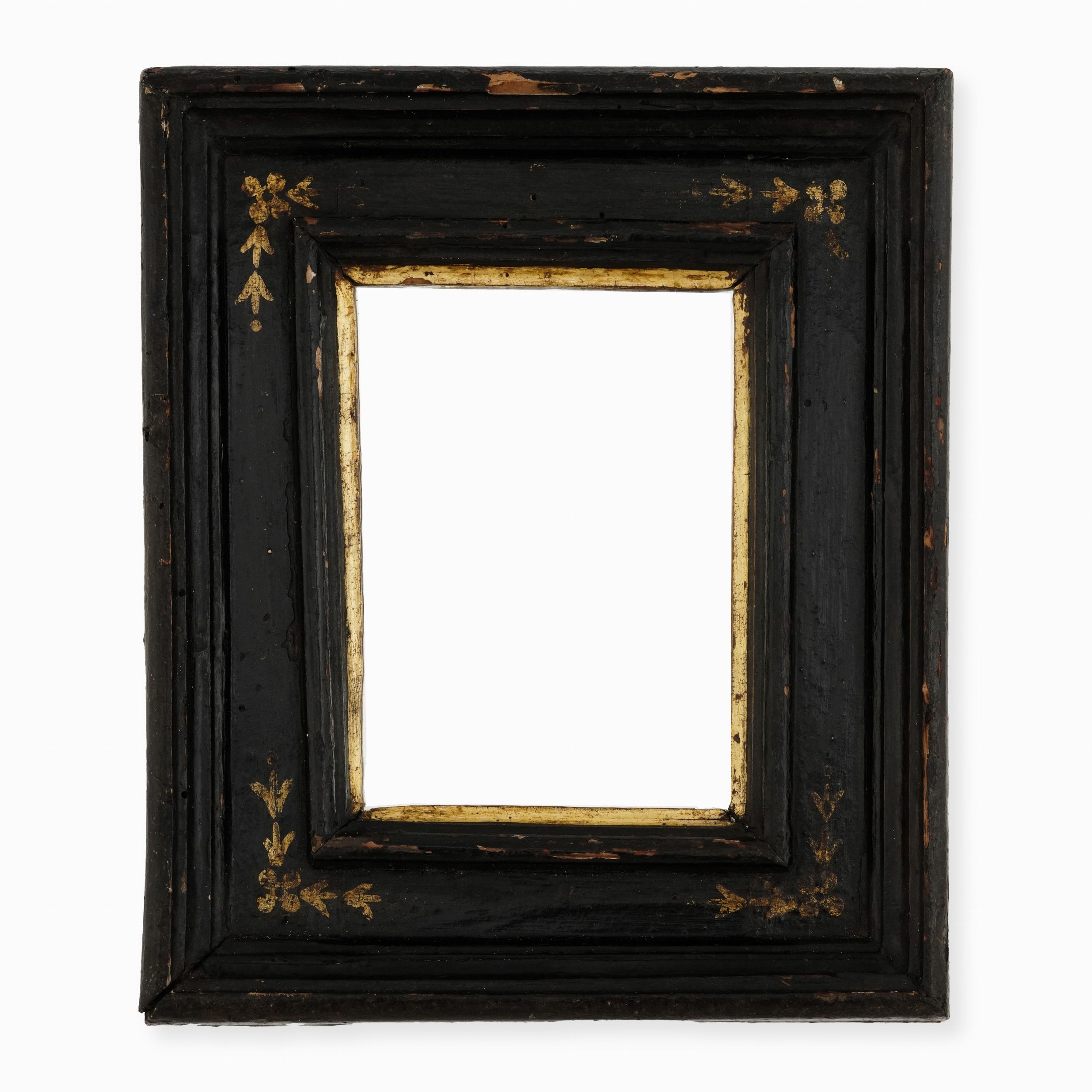 Piccola cornice a cassetta in legno ebanizzato con decori dorati. Toscana XVII s [..]