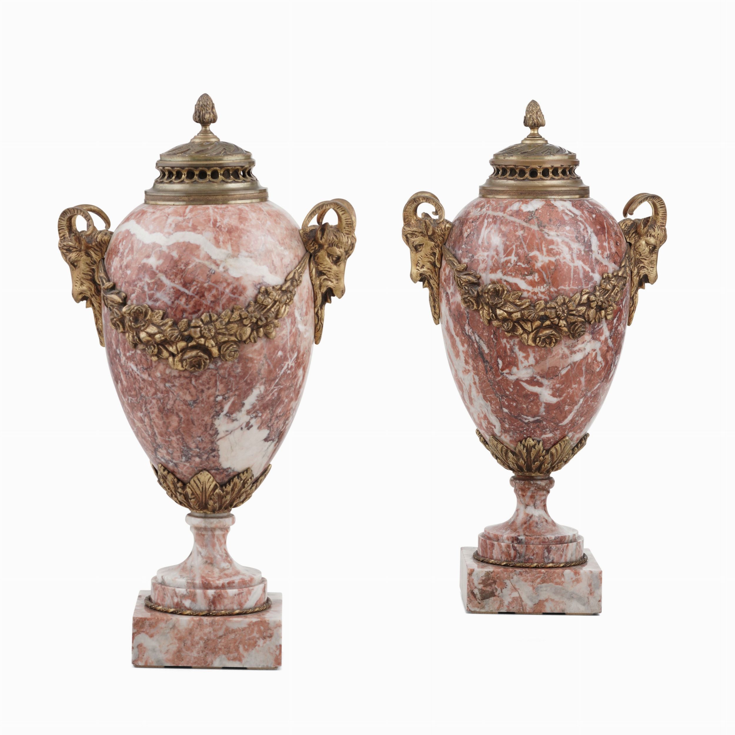 Coppia di vasi in marmo con montatura in bronzo dorato. XIX-XX secolo