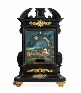 cm 120X56X263 Mosso sul fronte e sui fianchi, lastronatura di fondo in violetto con intarsi con motivi di quadrifogli [..]